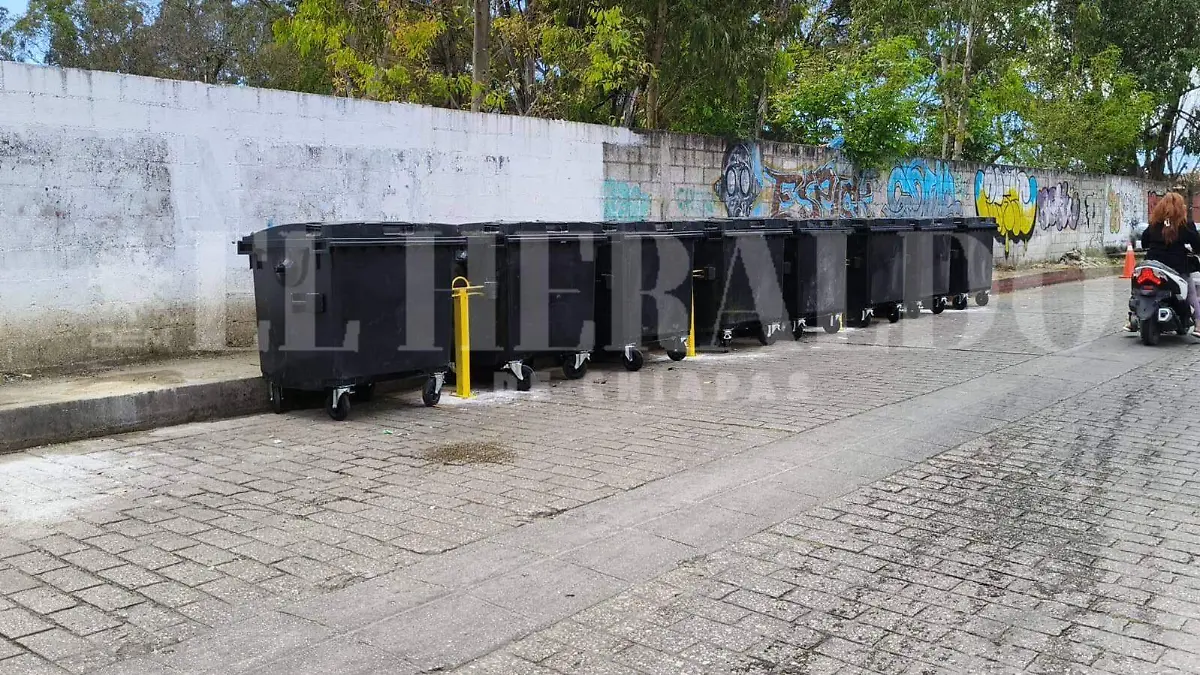 28 de septiembre de 2023En Tuxtla Gutiérrez, contenedores de basura se mantienen almacenados y sin uso