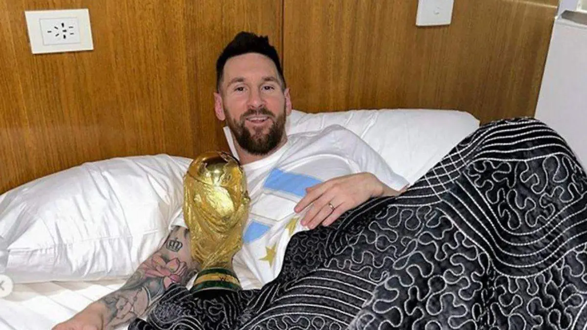 20 de diciembre de 2022Lionel Messi no suelta la copa del mundo ni un segundo ¡Hasta durmió con ella!
