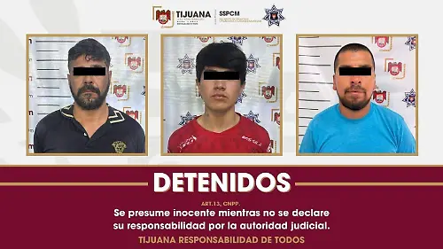 Detienen a tres personas señaladas de privación ilegal de la libertad en TijuanaLos detenidos fueron asegurados y puestos a disposición de la autoridad correspondiente para determinar su situación legal.
