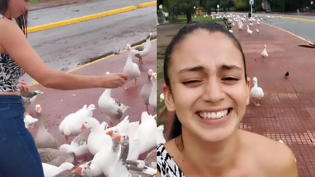 24 de abril de 2024¡Nos has salvado, estamos agradecidos! Joven alimenta gansos y las aves la persiguen